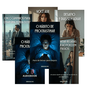 Você vai receber o eBook completo: O Hábito de Procrastinar + 5 bônus que, vendidos separadamente, somariam mais de R$ 260.